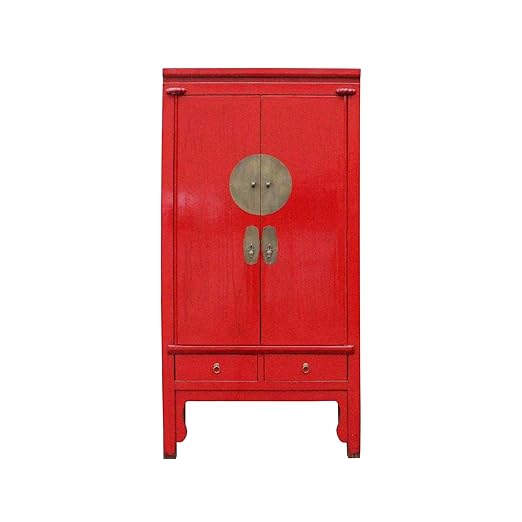 Chinese Distressed Red Tall Wedding Armoire Wardrobe Tv Cabinet