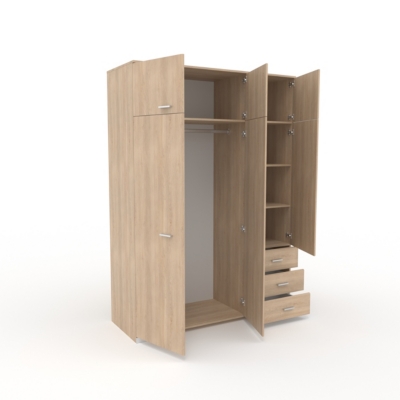 Armoire 3 Portes 6 Tiroirs Lake Coloris Chene Sonoma Structure