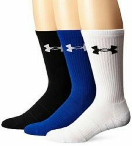 Under Armour Elevated Crew Socks 3 Pair White Black Blue Mens 9