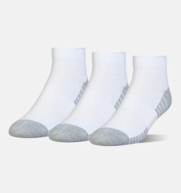 Under Armour Mens Heatgear Tech White Low Cut Socks 3 Pairs Size
