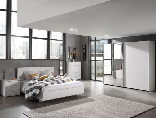 Armoire A Portes Coulissantes Et Miroir Blanc Et Beton Stoner 2