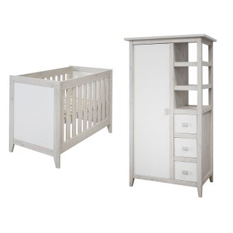 Lit Bebe 60x120 Et Armoire 2 Portes Twf Oslo Gris Clair