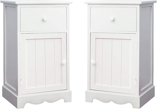 Une Paire De Tables De Chevet En Bois Blanc Table De Nuit Avec 1