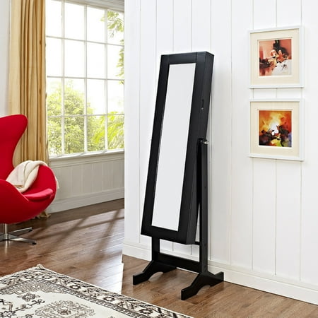 Modern Jewelry Armoire Cheval Mirror High Gloss Black Walmart Com