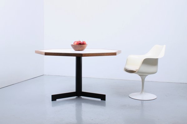 Dutch Modernist Hexagonal Wenge White Formica Dining Table