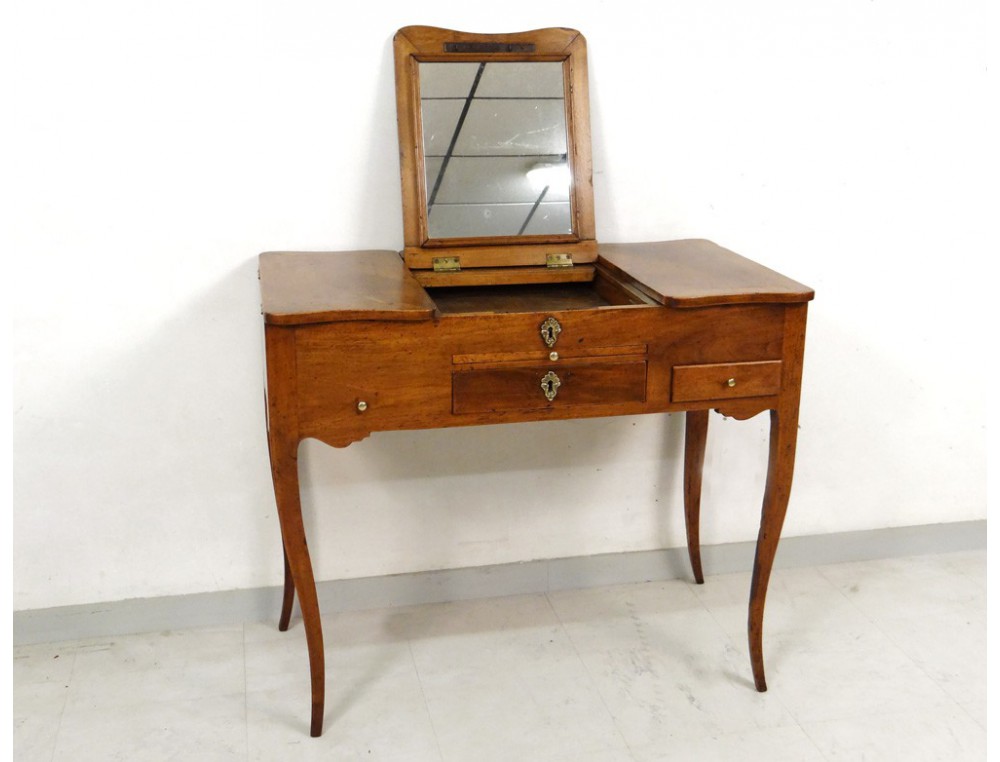 Coiffeuse Rustique Louis Xv Merisier Ecritoire Bureau Glace Miroir
