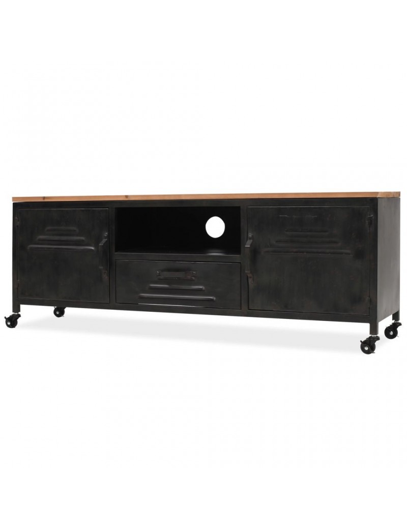 Meuble Tv Casier Industriel A Roulettes 120x30x43cm Achat Sur