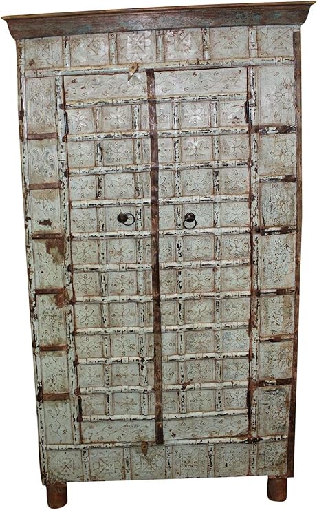 Antique Indian Armoire Rustic Wardrobe Large Cabinet Distressed