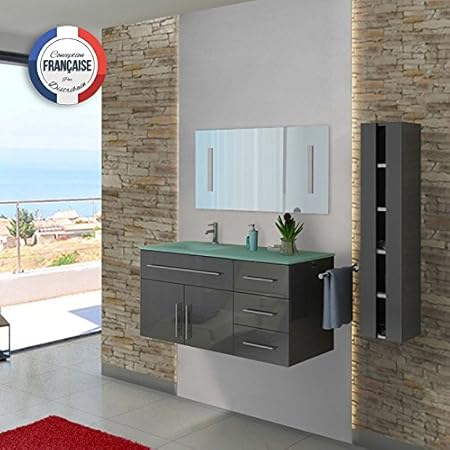 Meuble De Salle De Bain Double Vasque Gris Suspendu Meuble Double