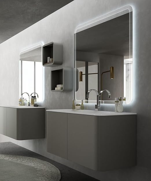 Armoire De Toilette Taupe Double Miroir Eclairage Led L120 Tiga