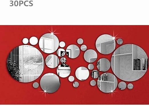 30 Pieces Rond Miroir Stickers Muraux Diy Cercle Art Autocollant