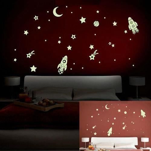 Joli Autocollant Brillant Adhesif Sticker Mural Fusee Et Etoiles