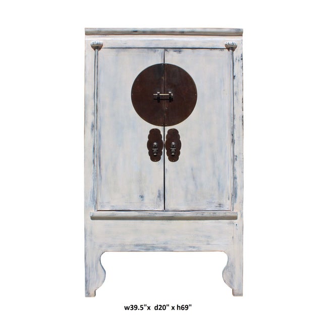 Chinese Distressed Off White Tall Wedding Armoire Wardrobe Tv