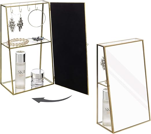 Amazon Com Mygift Vintage Glass Brass Jewelry Storage Cabinet