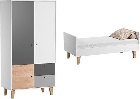 Lit Bebe 60x120 Et Armoire 2 Portes Bopita Kyan Gris Et Bois