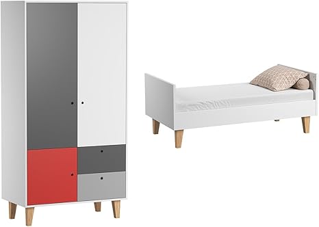 Lit Evolutif 70x140 Et Armoire 2 Portes Concept Rouge Amazon Fr