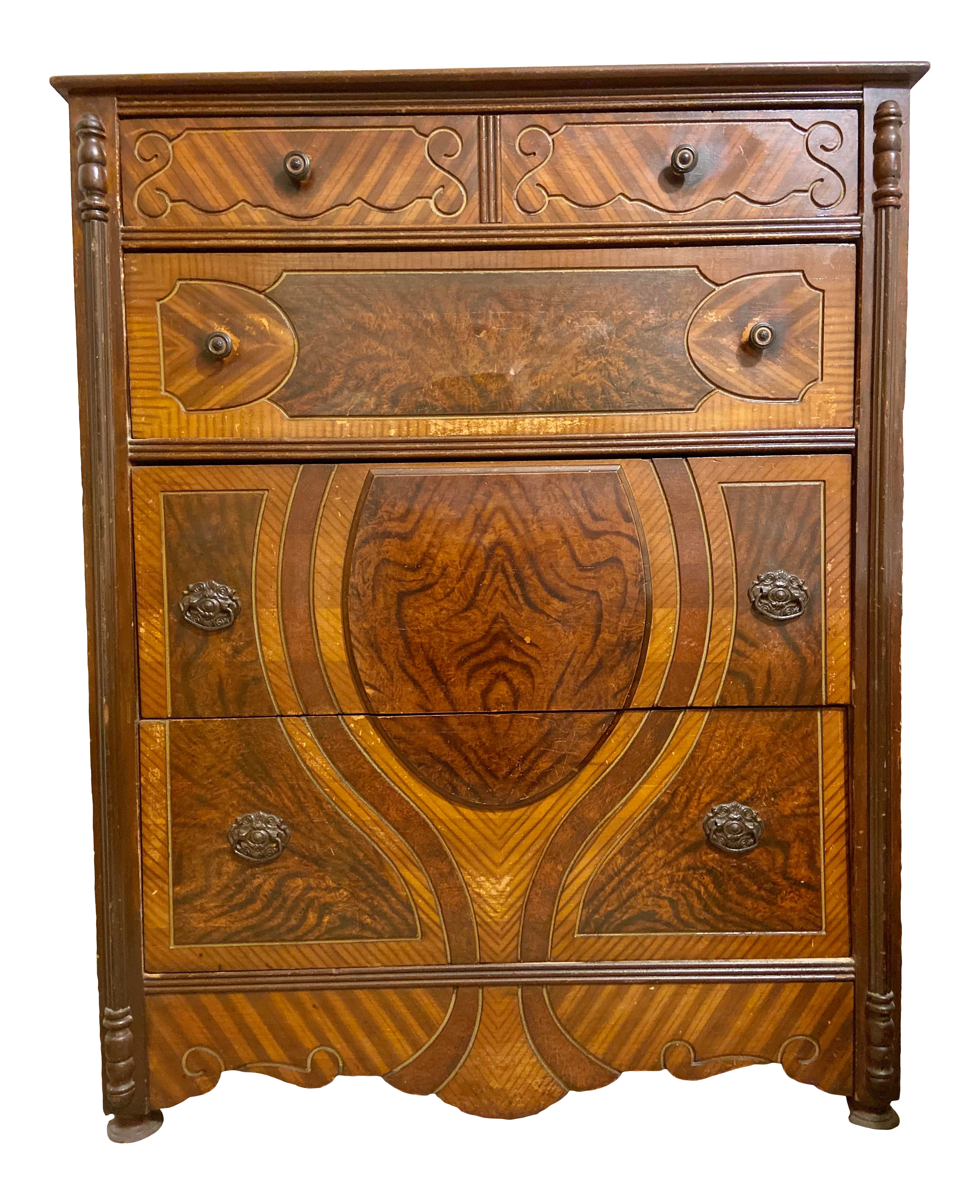 Sold Art Deco Waterfall 1930 S Vintage Tall Chest Or Dresser