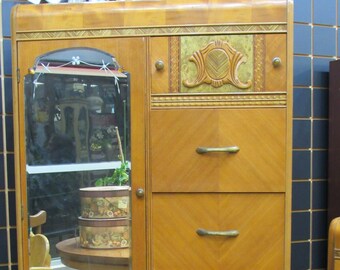 Antique Art Deco Waterfall Armoire Dresser Secretary Decotheque