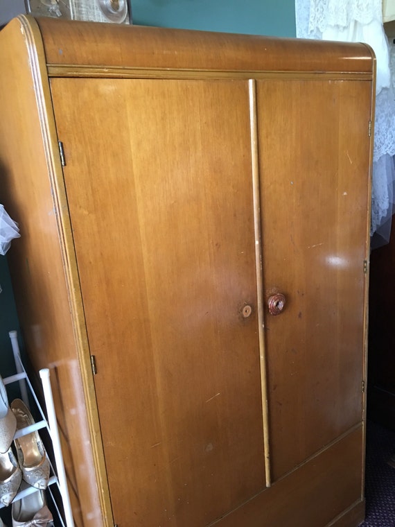 Vintage 1930 S 40 S Art Deco Waterfall Armoire Wardrobe Tallboy