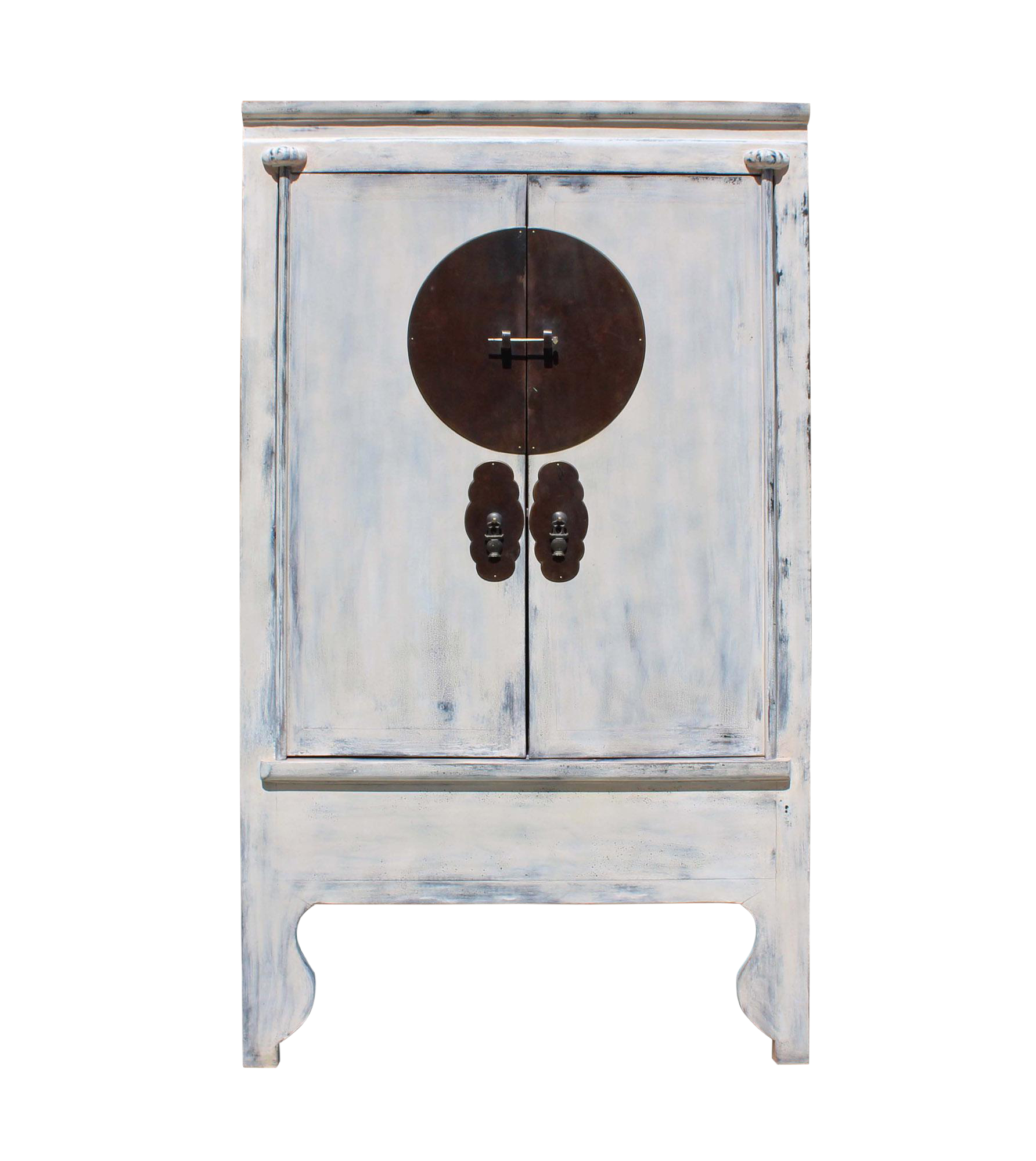 Chinese Distressed Off White Tall Wedding Armoire Wardrobe Tv