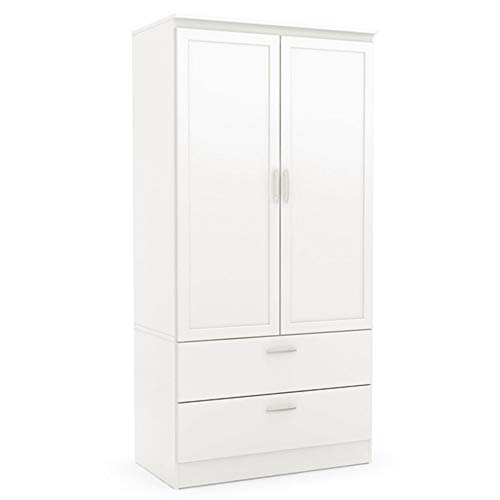2 Door Armoire With 2 Drawers And Clothing Rod In White White