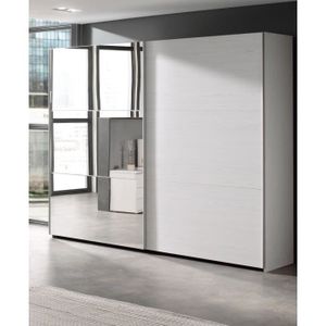Armoire Adulte A Porte Coulissante Et Miroir Blanc Et Argente P