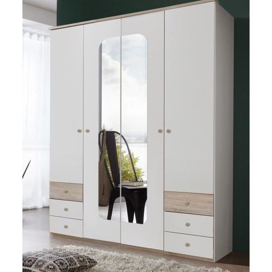 Armoire Adulte Contemporaine 180 Cm Blanc Chene Portorico L 180 X