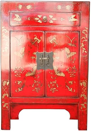 Armoire Chinoise Rouge Decor De Papillon 80 Cm China Collection