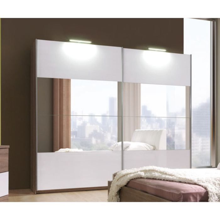 Armoire 2 Portes Coulissantes Versus Blanche Laquee Avec Miroirs