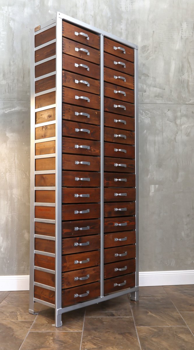 Armoire A 34 Tiroirs Industrielle En Noyer 1950s En Vente Sur Pamono