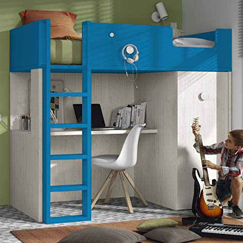 Lit En Hauteur Avec Bureau Et Armoire Young Bleu