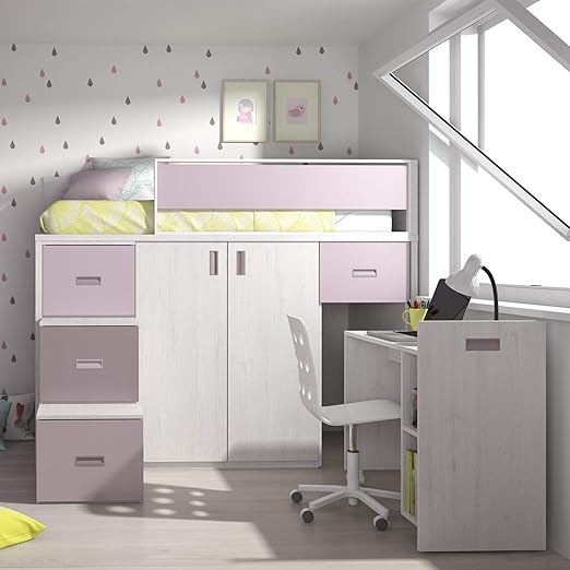 Lit Mezzanine Rose Avec Bureau Et Armoire Integres Novocom Top