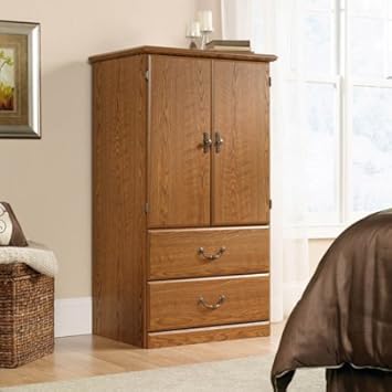 Amazon Com Wardrobe Armoire Oak Finish Closet Clothing