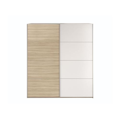 Armoire Blanche Et Chene Avec Miroir 2 Portes Coulissantes Cbc