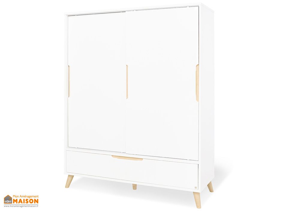 Bobochic Armoire Nordi Blanc Brillant Et Bois Clair Chene Et Blanc