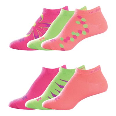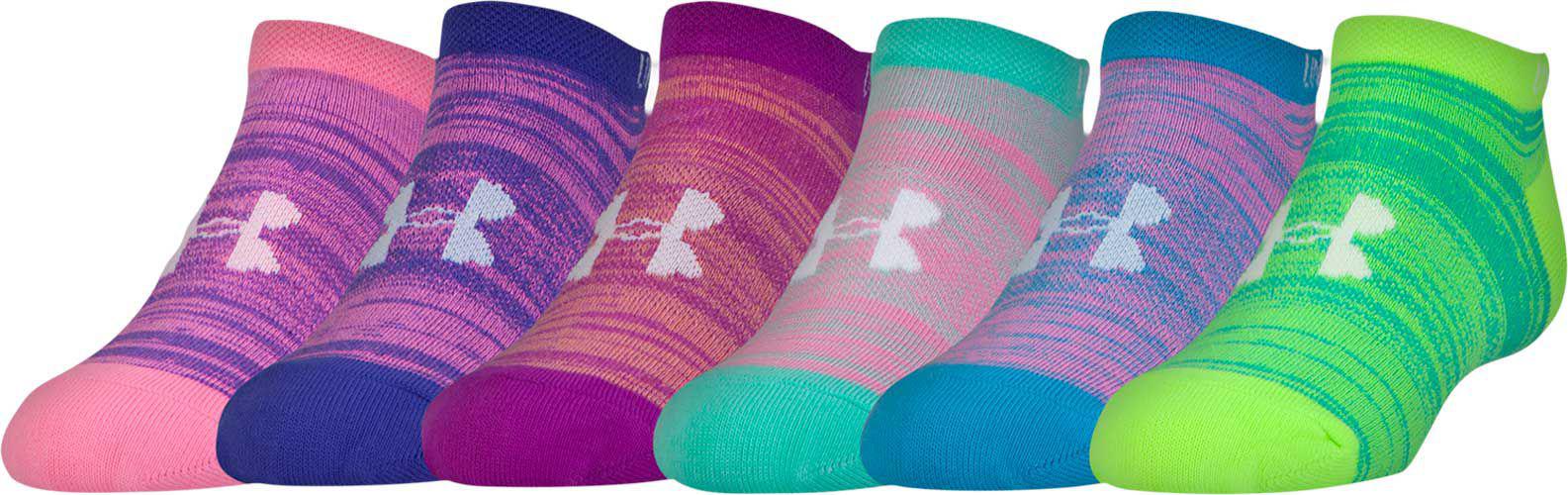 2017 Under Armour Socks Bright Girls 6 Pack No Show Kids 7 49