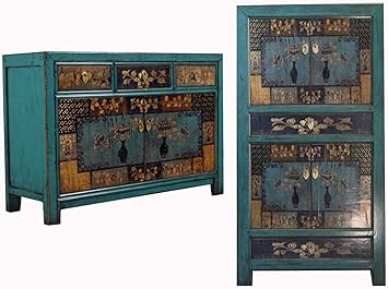 Armoire Et Commode Chinois Bleu Meubles Chambre Asiatique Antique