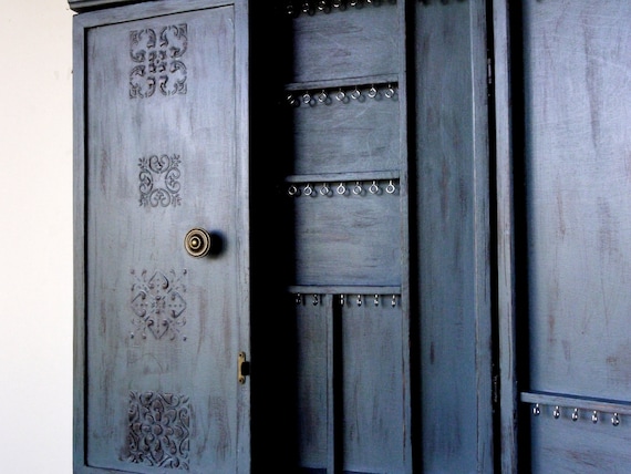 Jewelry Cabinet Armoire Distressed Jewelry Organizer Wooden Etsy
