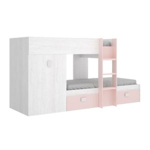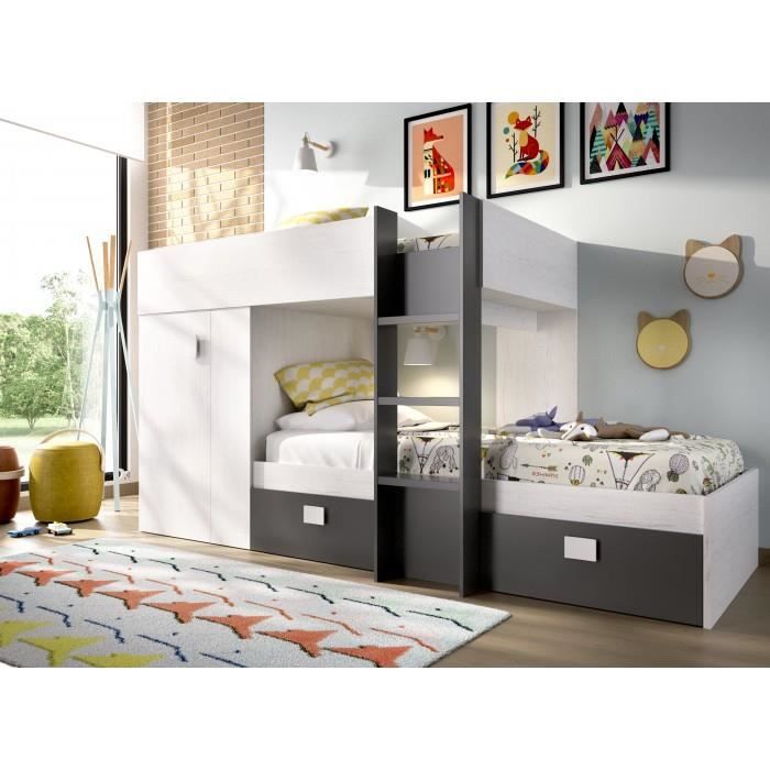 Lits Superposes Julien 90x190cm Armoire Blanc Noir Matelas