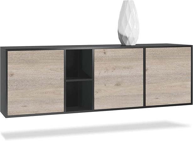 Vladon Buffet Armoire Cuba Corps En Noir Mat Facades En Chene