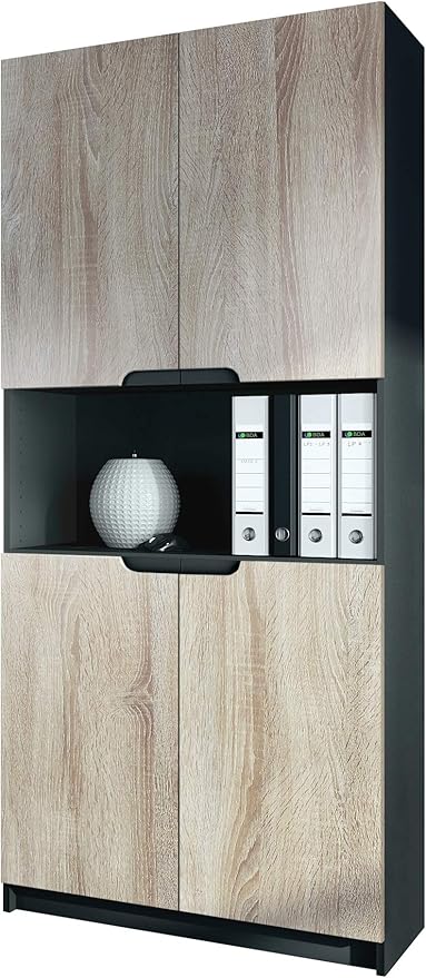 Vladon Armoire De Bureau Rangement Logan V2 Corps En Noir Mat