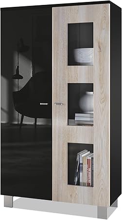 Vitrine Armoire Denjo Corps En Noir Mat Facades En Noir Haute