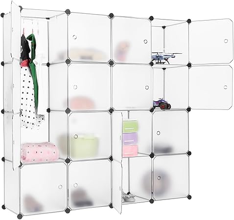 Langria Armoire Penderie 16 Cubes Modulable Etageres Plastique