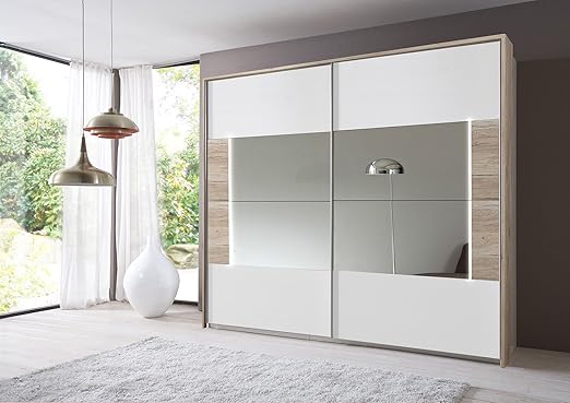Armoire Blanche Et Chene Avec Miroir 2 Portes Coulissantes Cbc