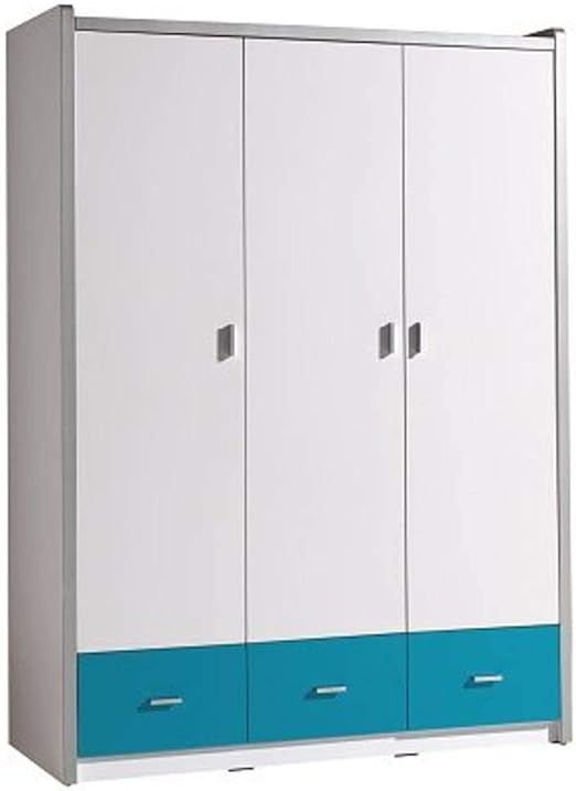 Armoire Dressing Bonny 3 Portes Blanche Et 3 Tiroirs Bleu Achat
