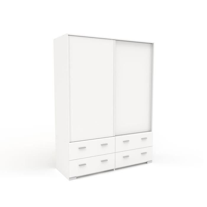 Tousmesmeubles Armoire Dressing Blanche Portes Coulissantes