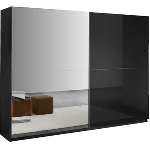 Armoire 2 Portes Dont 1 Miroir 2 Tiroirs Greven Blanc Noir