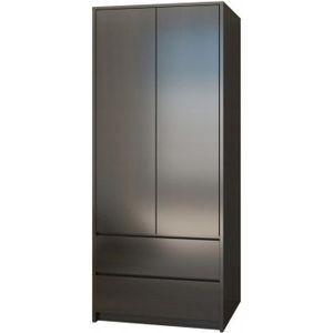 Armoire Moderne 180 Cm 2 Portes En Agglomere Et Verre Coloris Noir