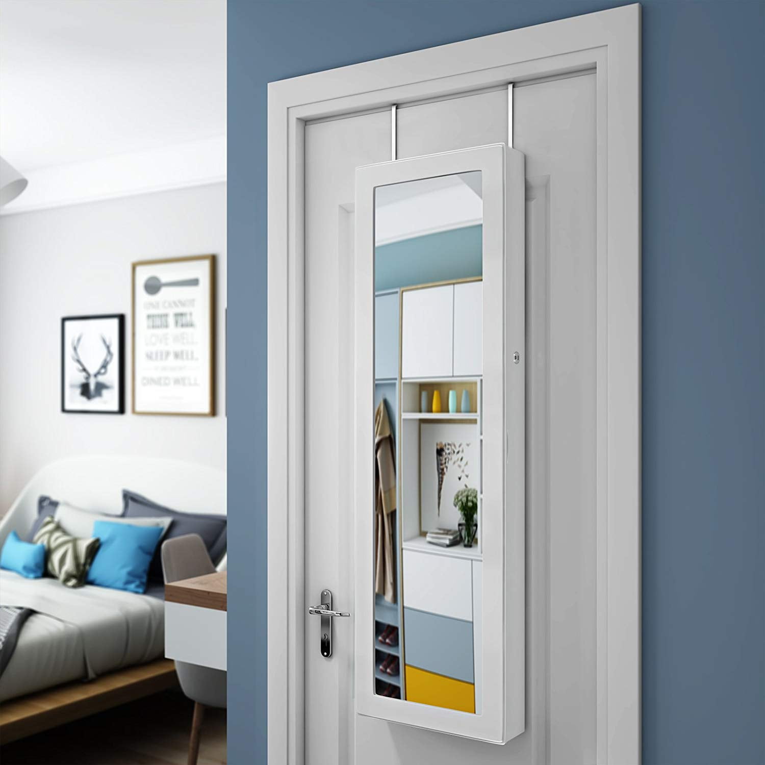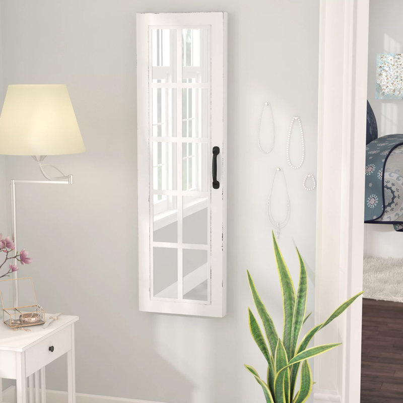 Latitude Run White Wall Door Mounted Mirror Jewellery Cabinet