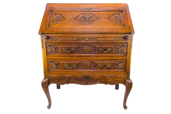 Vintage French Bronze Carved Oak Louis Xv Style Secretaire